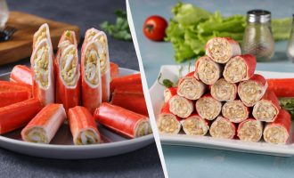 Για αυτή τη συνταγή, αντί για κρούστες, χρησιμοποιείται έτοιμη σφολιάτα, για παράδειγμα, “αυτιά” ζάχαρης. Η γέμιση ετοιμάζεται κανονική κρέμα, αλλά μπορείτε να την αντικαταστήσετε με μια άλλη ανάλογα με τη γεύση, για παράδειγμα, ξινή κρέμα.